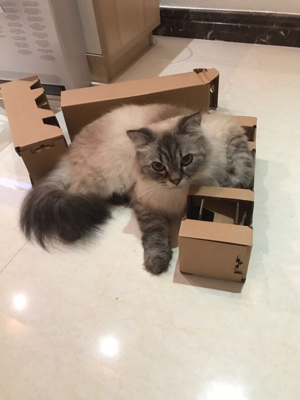 Unsere Anreise nach Changchun verlief planmäßig, war aber schon anstrengend, wir waren fast 24 Stunden von Haustür zu Haustür unterwegs.Besonders stolz sind wir auf Stern & Schnuppe. Es waren nur ein paar kurze „miau“ zwischen den Schläfchen von Schnuppi zu hören, während Stern zwischen seinen Nickerchen sogar ein wenig Brotzeit machte. Auch großes Lob an die Lufthansa Crew, durchwegs alle sehr herzlich gegenüber uns und den Jungs. Auch der Inlandsflug bis Changchun ist gut verlaufen und das kleine Empfangskomitee der Agentur erwartet uns am Flughafen. Noch schnell ein kurzer Stop an einem kleinen 24/7 Supermarkt und dann total gespannt Richtung chinesische Wohnung. Dort angekommen beschnupperten die Jungs zügig alle Räume und kurz darauf verhielten sich beide typisch ihrer Natur mit schlafen, fressen, meckern und ein wenig schmusen – reisen scheint für die beiden wohl schon das normalste überhaupt zu sein.