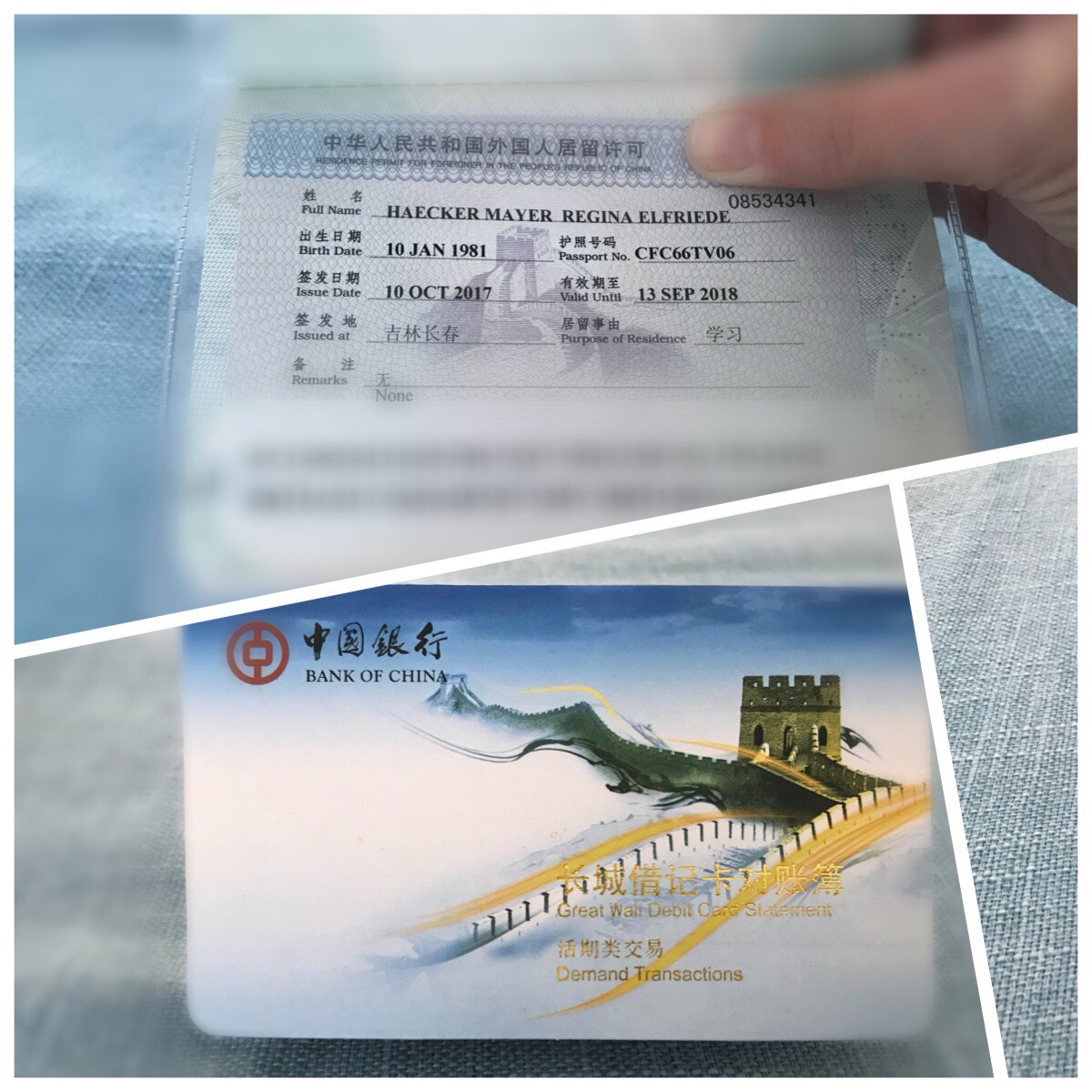 Endlich zurück – mein Reisepass inkl. Visa & ganz neu mein Konto bei der Bank of China