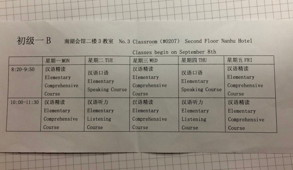 Im Hauptfach habe ich einen männlichen Lehrer, der leider kein Wort Englisch spricht. Da sitze ich oft im Unterricht und verstehe im warsten Sinne des Wortes nur chinesisch… In den beiden anderen Kursen unterrichten uns jeweils Lehrerinnen, welche Gott sei Dank englisch sprechen und damit das Chinesisch erklären.