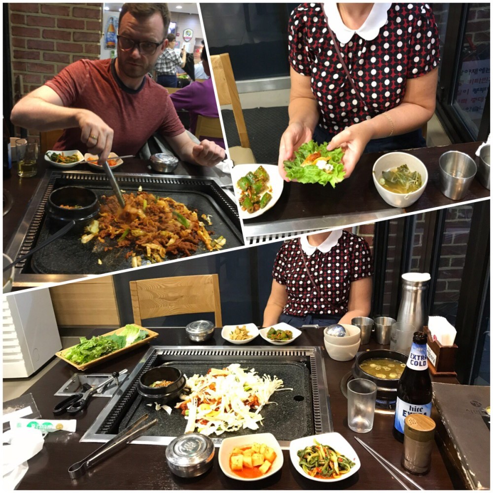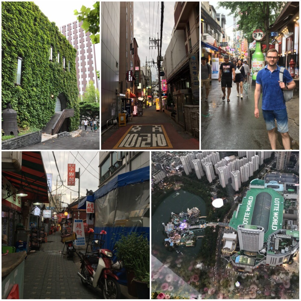 Seoul hat viele verschiedene Gesichter. Von Bereichen mit Wolkenkratzer an Wolkenkratzer über viele kleine eng aneinander gebaute Häuser in bergiger Gegend und natürlich unzählige verwinkelte Gassen. In den „Fußgängerzonen“ gibt es schon eine gehäufte Anzahl an Beautyshops und Möglichkeiten zu Massage, Pediküre, Wimpernverlängerung etc. Aber mein Eindruck war, dass die Bewohner Seouls den Beautywahn nicht übertreiben sondern eher ganz im Gegenteil meist sehr natürlich gepflegt unterwegs sind. Auch das koreanische Essen haben wir probiert und Holger mochte es wirklich sehr, sich nach dem gebrutzle kleine Salatpäckchen zu formen und zu vernaschen.